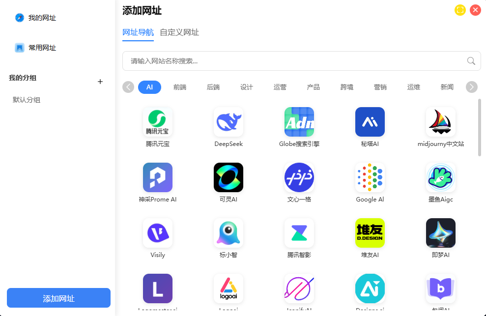 科达云的网址收藏 ,允许你像手机应用一样进行文件夹分组、排序。既可以一键添加热门网站,也支持自定义入口。