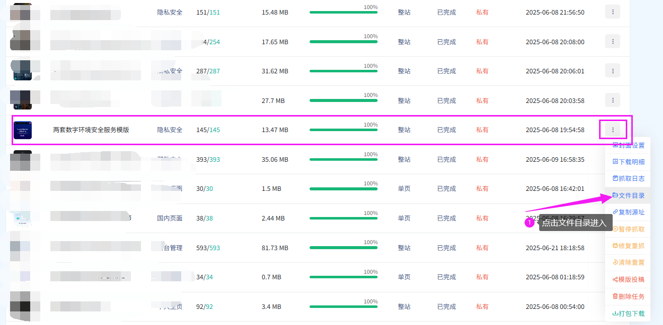 接下来回到网站快照工具,进入你的任务列表。