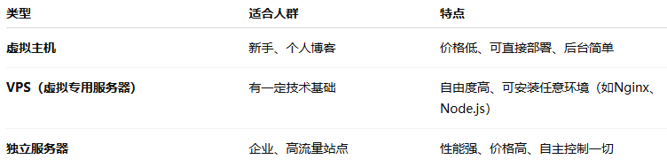 ps:如果只是练习部署或个人项目,建议选择VPS(1核1G内存)或虚拟主机入门版即可。