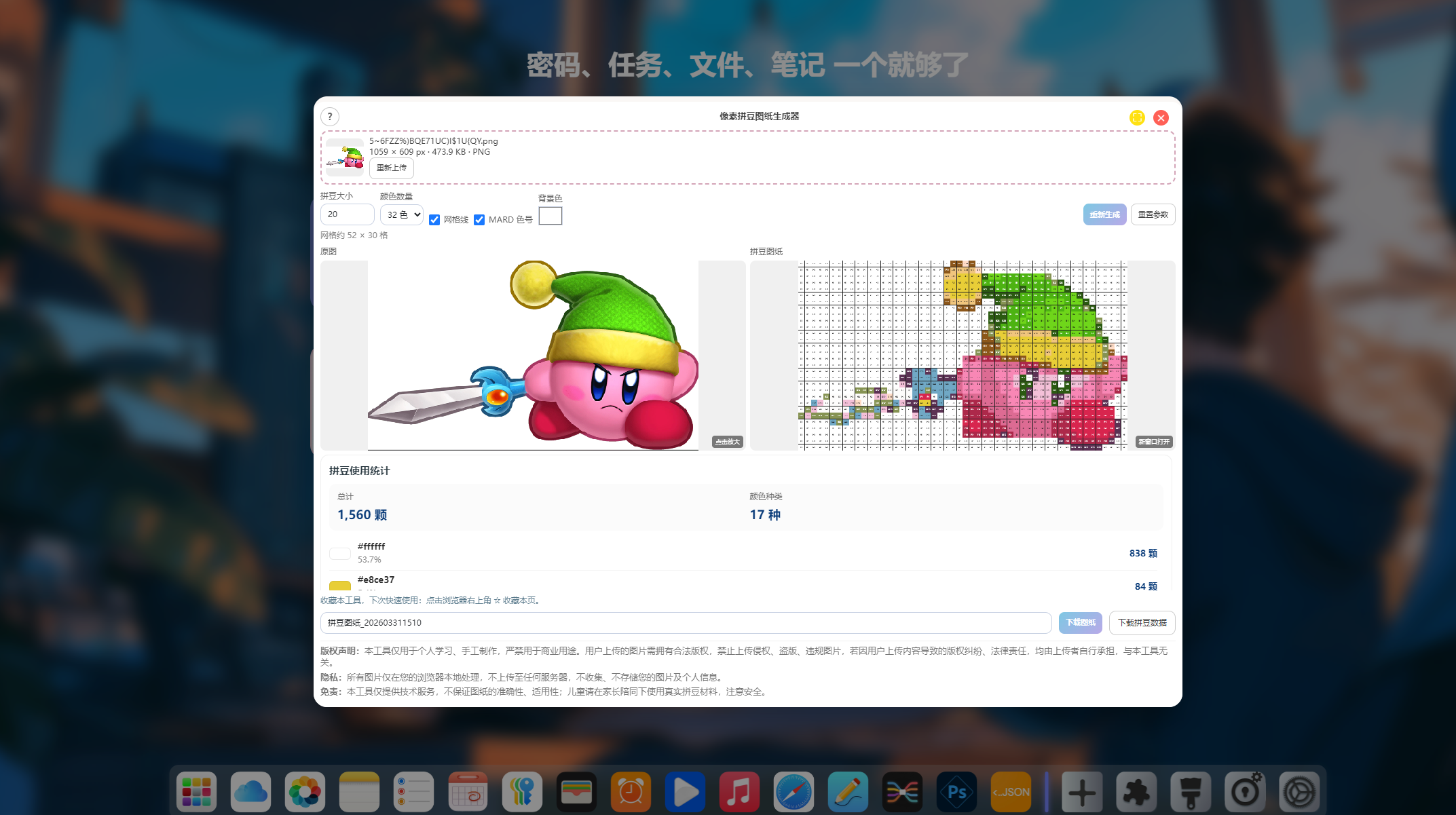 最近挖到一个超实用的拼豆图纸生成小工具,用下来真的顺手,今天纯分享给同样爱拼豆的大家。